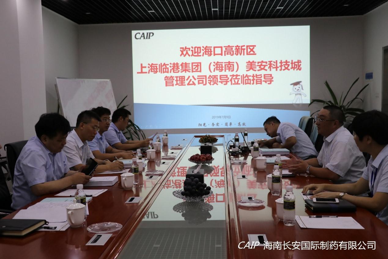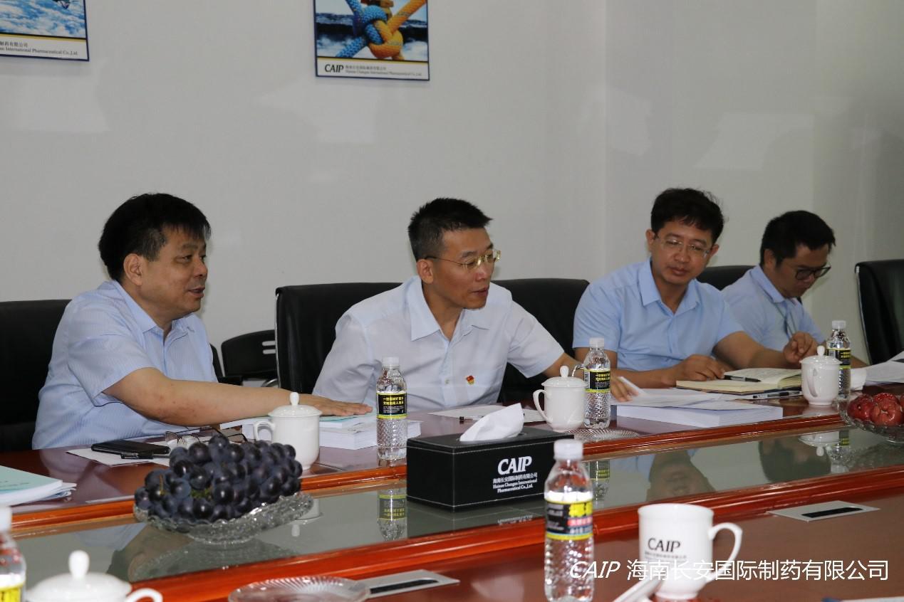 7月9日上午,??诟咝聟^(qū)上海臨港集團(tuán)(海南)美安科技城管理公司孫貴華董事長(zhǎng)、海口高新區(qū)管委會(huì)韓寶富副主任、海口高新區(qū)管委會(huì)招商局徐吉局長(zhǎng)等一行領(lǐng)導(dǎo)蒞臨海南長(zhǎng)安國(guó)際制藥有限公司調(diào)研交流,公司汪立冬總經(jīng)理出席交流。