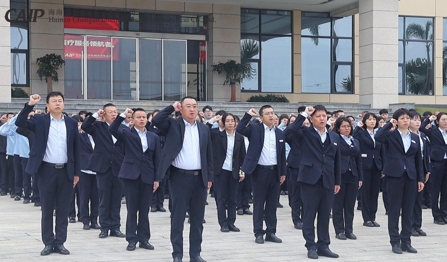 儀式啟幕,莊嚴(yán)肅穆。全體員工整齊列隊,精神抖擻。英姿颯爽的護(hù)旗手邁著鏗鏘有力的步伐走向升旗臺。在激昂的國歌聲中,鮮艷的五星紅旗緩緩升起,長安制藥全體員工莊嚴(yán)肅立,向國旗行注目禮,這一刻,國旗承載著全體員工對國家繁榮昌盛的美好祝愿,一同升起的司旗也象征著企業(yè)在新的一年里,為海南自由貿(mào)易港醫(yī)藥產(chǎn)業(yè)發(fā)展貢獻(xiàn)力量的堅定決心。