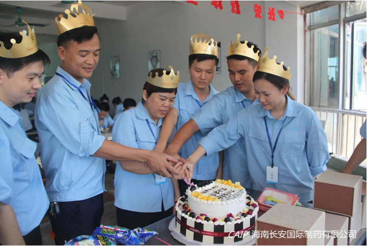 正直炎炎烈日的六月,在陽光生機盎然,碧波天藍的季節(jié),長安制藥又迎來的本月度的員工生日會,蛋糕映襯了仲夏的繽紛,氣球裝飾了青春的多彩,蠟燭點亮了長安的祝福。