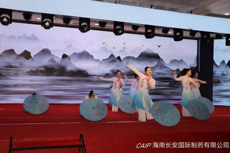 在領(lǐng)導(dǎo)們精彩的致辭過后,演出正式開始。團(tuán)拜會在《奮勇向前》舞蹈下拉開序幕,這場舞蹈正展現(xiàn)了公司陽光、務(wù)實、簡單、高效的精神,舞蹈寓意著長安國際制藥在新的一年將繼續(xù)攜手共進(jìn),奮勇向前。