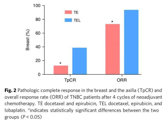 研究結果顯示:多西他賽和表柔比星方案中加入洛鉑作為TNBC的新輔助化療方案與多西他賽和表柔比星方案相比高顯著提高了TpCR率和ORR,毒性可以耐受; 短期來看還可以減少復發(fā)和轉(zhuǎn)移率。