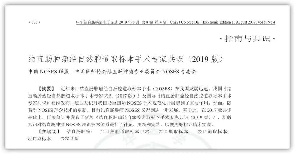 該版《共識》對NOSES 的整個理論技術體系進行了補充、更新和完善,并針對結直腸NOSES多方面問題進行闡述,進而更好地指導臨床實踐,促進NOSES手術的規(guī)范開展。